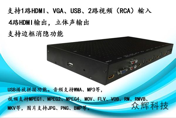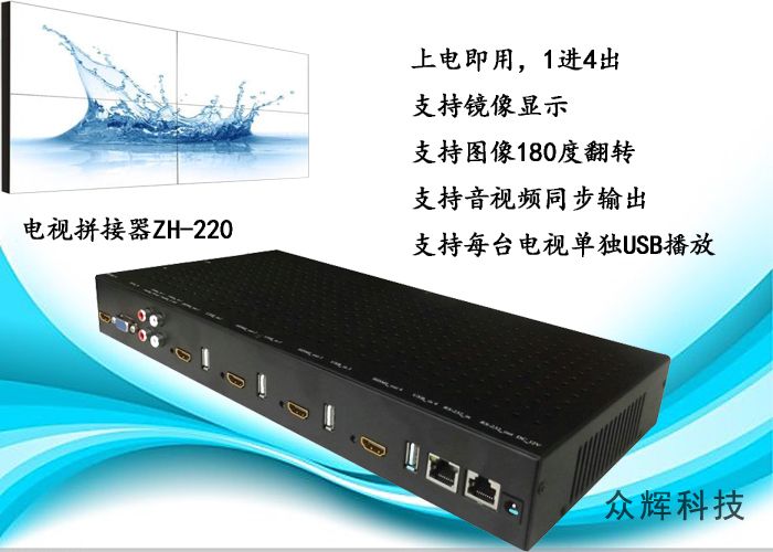可以鏡像拼接的4電視機(jī)拼接器ZH-220