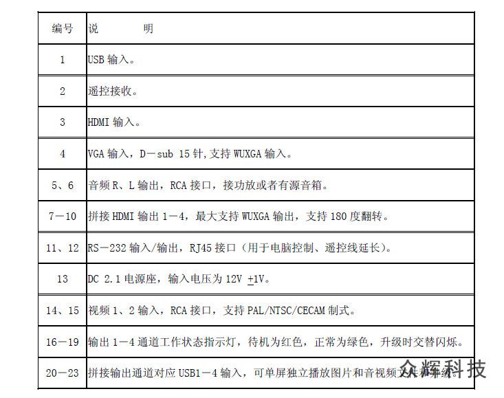 - 支持多路不同的視頻源,也可以U盤播放,無需外接矩陣分配器等,即可實現(xiàn)單臺2*2拼接,或者多臺級聯(lián)使用。