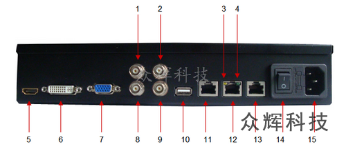 | 8 | 視頻1輸出,BNC接口。 |